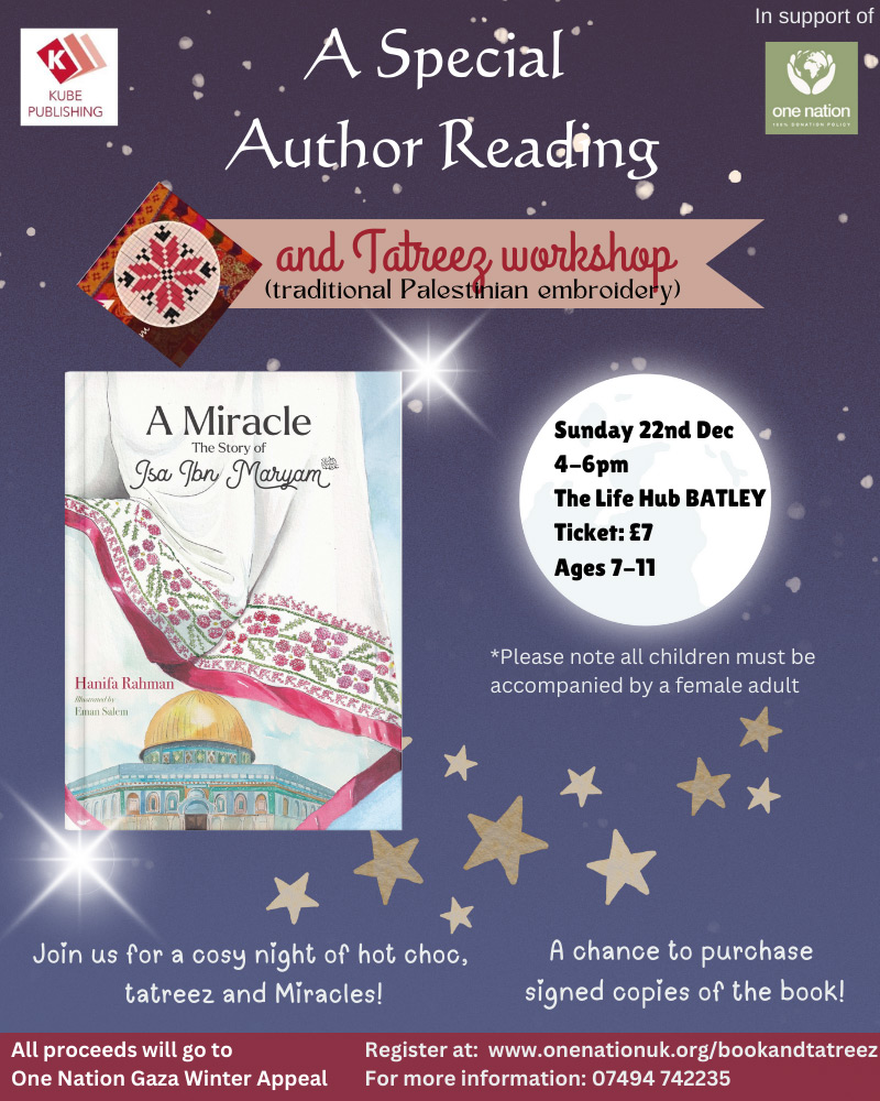 Special Author Reading with Hanifa Rahman for her recently published book, ‘A Miracle, The Story of Isa Ibn Maryam AS’ in support of One Nation Event at the Life Hub, Batley.