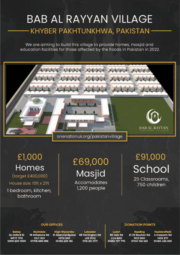 This will be held in aid of our ‘ *Bab Al Rayan Village*’ in Pakistan which will help provide Homes, a Masjid, and Education facilities for those affected by the floods.