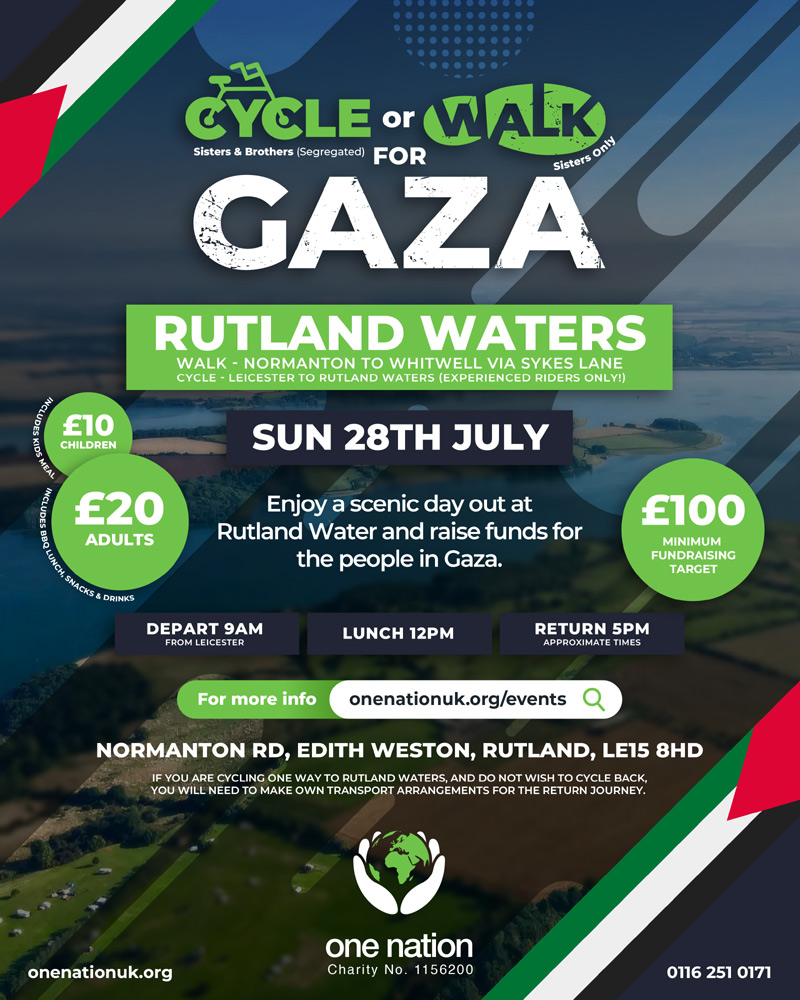 Enjoy a scenic day out walking with the children, at Rutland Water, and raise funds for the people in Gaza.