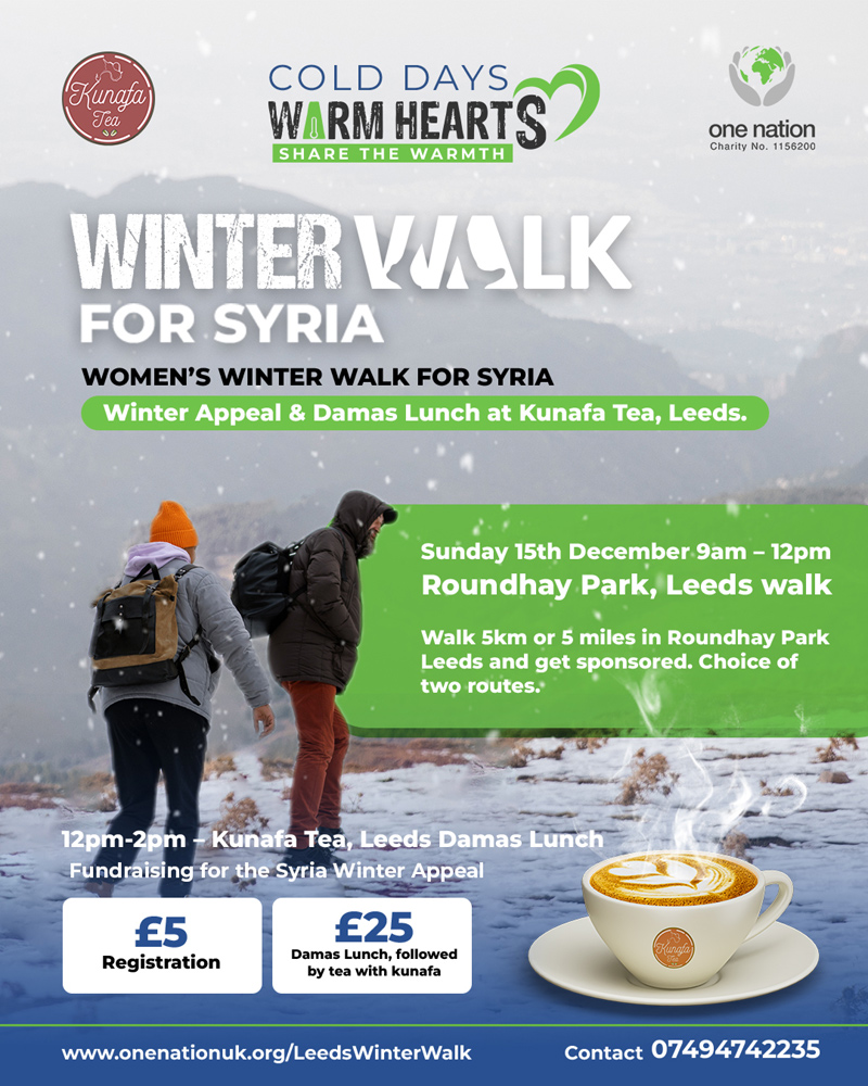 Women’s Winter Walk for Syria Winter Appeal & Damas Lunch at Kunafa Tea, Leeds.