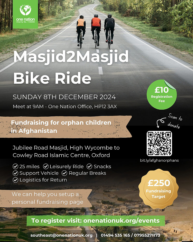 Join us for a day of sport and solidarity! We will be cycling from Jubilee Road Masjid in High Wycombe to Cowley Road Islamic Centre in Oxford, on Sunday 8th December Inshaa Allah. .