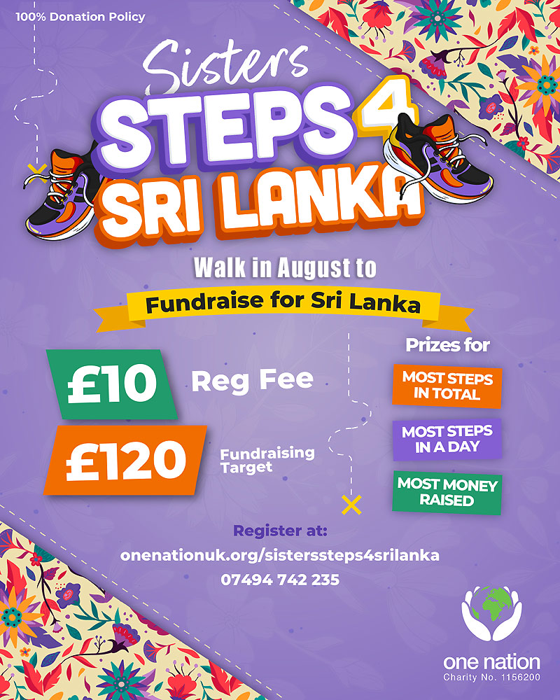 Walk as many steps as you can in August 2024 and fundraise for projects in Sri Lanka.