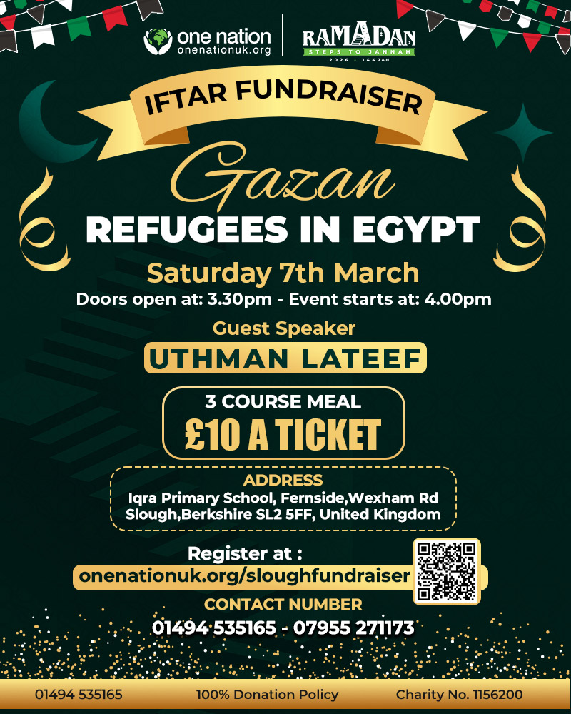Join us for a blessed and inspiring evening of unity, reflection and compassion at the Slough Iftar Fundraiser – For Gazan Refugees in Egypt.