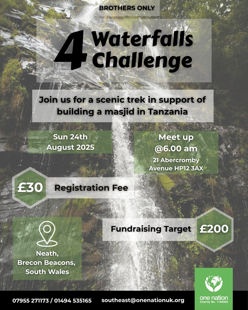 Join us for the Four Waterfalls Challenge trek in the heart of Brecon Beacons, Wales, as we lace up and step forward to raise funds to help build a masjid in Tanzania — a lasting sadaqah jariyah that will benefit generations to come, inshaAllah.